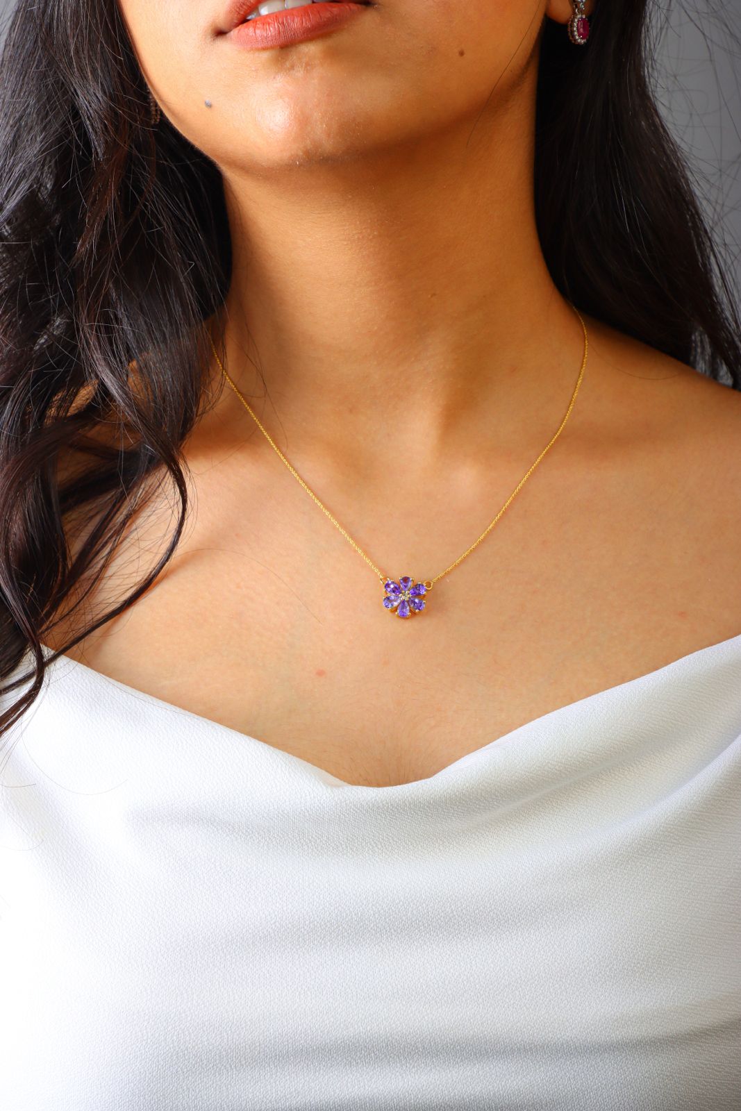 14k Gold Blue Lily Necklace